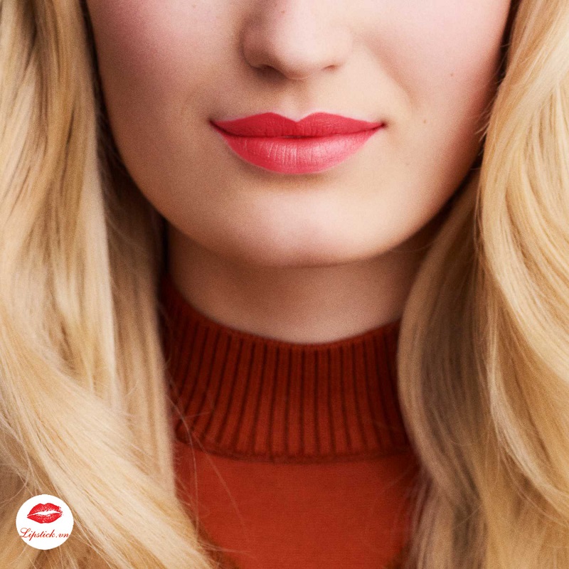 Khác biệt với dòng satin, son Hermès màu 27 bản matte nhìn trên thỏi son nhám lì, hoàn toàn không bóng bẩy. Em này nhìn phần thỏi son kiểu Louboutin ấy. Chất son thì lướt mịn như bơ luôn, thoa lên môi trượt mà không bết. Cứ tưởng son Rouge Hermès Matte 27 chỉ được cái đẹp bên ngoài, đẹp màu son thôi. Ấy vậy mà không, toàn diện ở cả kết cấu nữa mới “chết đứ đừ” này. Son khiến môi căng mọng, từng rãnh môi đều được phủ đầy mà vẫn nhẹ tênh. Màu thì chuẩn nữa. Dù thoa một lớp thì son Hermès 27 hồng san hô neon vẫn chẳng lệch đi đâu được. Thành phần son giàu dưỡng nên cũng không hề gây khô môi. Môi mịn cả ngày dài vì đã có son Hermès màu 27 Rose Inoui rồi nè.