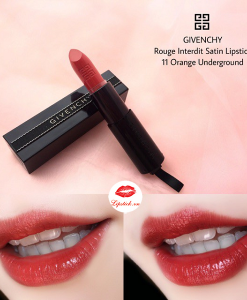 Không những mang đến bảng màu lộng lẫy, thiết kế sang trọng, tiện dụng Givenchy Rouge Interdit nói chung và son Givenchy 11 Orange Underground nói riêng còn gây ấn tượng với chất son semi-matte nửa lì, nửa bóng nhẹ, hứa hẹn sẽ trở thành sự lựa chọn hoàn hảo dành cho những quý cô sở hữu làn môi kém xinh, khô và nứt nẻ.