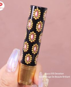 Son Gucci 515 Devotion dưới sự hỗ trợ của các thành phần cao cấp; không những dưỡng môi vô cùng hoàn hảo mà nó còn tạo ra một kết thúc đầy rực rỡ. Tuy nhiên có một nhược điểm của dòng son nhiều dưỡng và có bóng như thế này đó là thời gian giữ màu sẽ chỉ tồn tại trong 4 giờ.