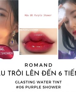 Tạo nên tên tuổi cho Romand, một phần cũng như những thỏi son tint này. Nếu yêu thích kiểu màu son sống động, chất son tint bóng bẩy, hấp dẫn thì son Romand 06 Purple Shower này đích thị là “chân ái” mà bạn tìm kiếm. Son “lên kệ” với đầy đủ màu sắc, rinh ngay trọn bộ để khoe nét cá tính cho bờ môi.